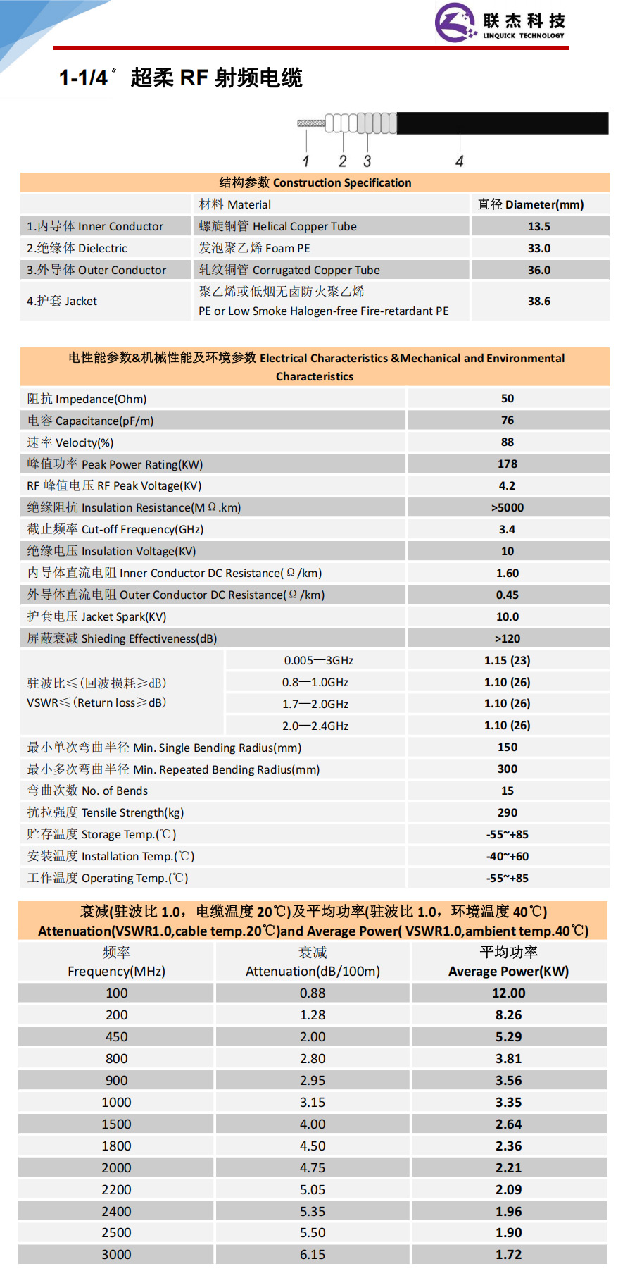 1-1/4〃 超柔 RF 射频电缆